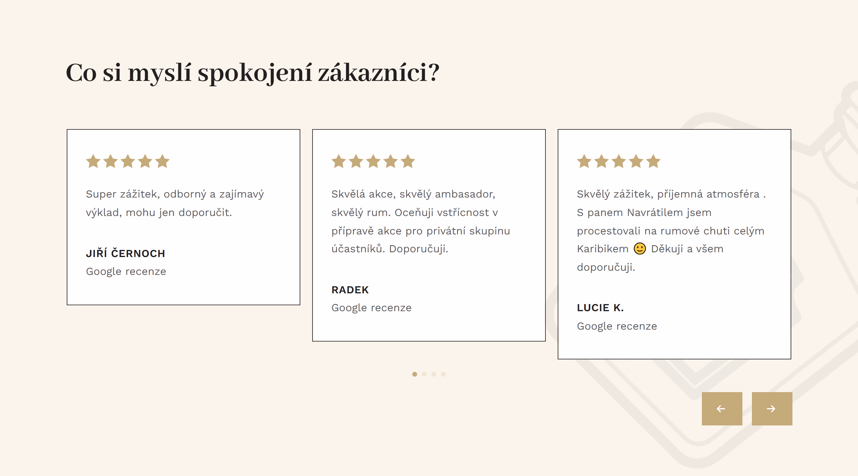 Hned na začátku – úvodní stránky – návštěvník pochopí, že jde o autentický projekt a zážitkovou degustaci. Žádné složité řeči, jen jasné sdělení a pozvánka.